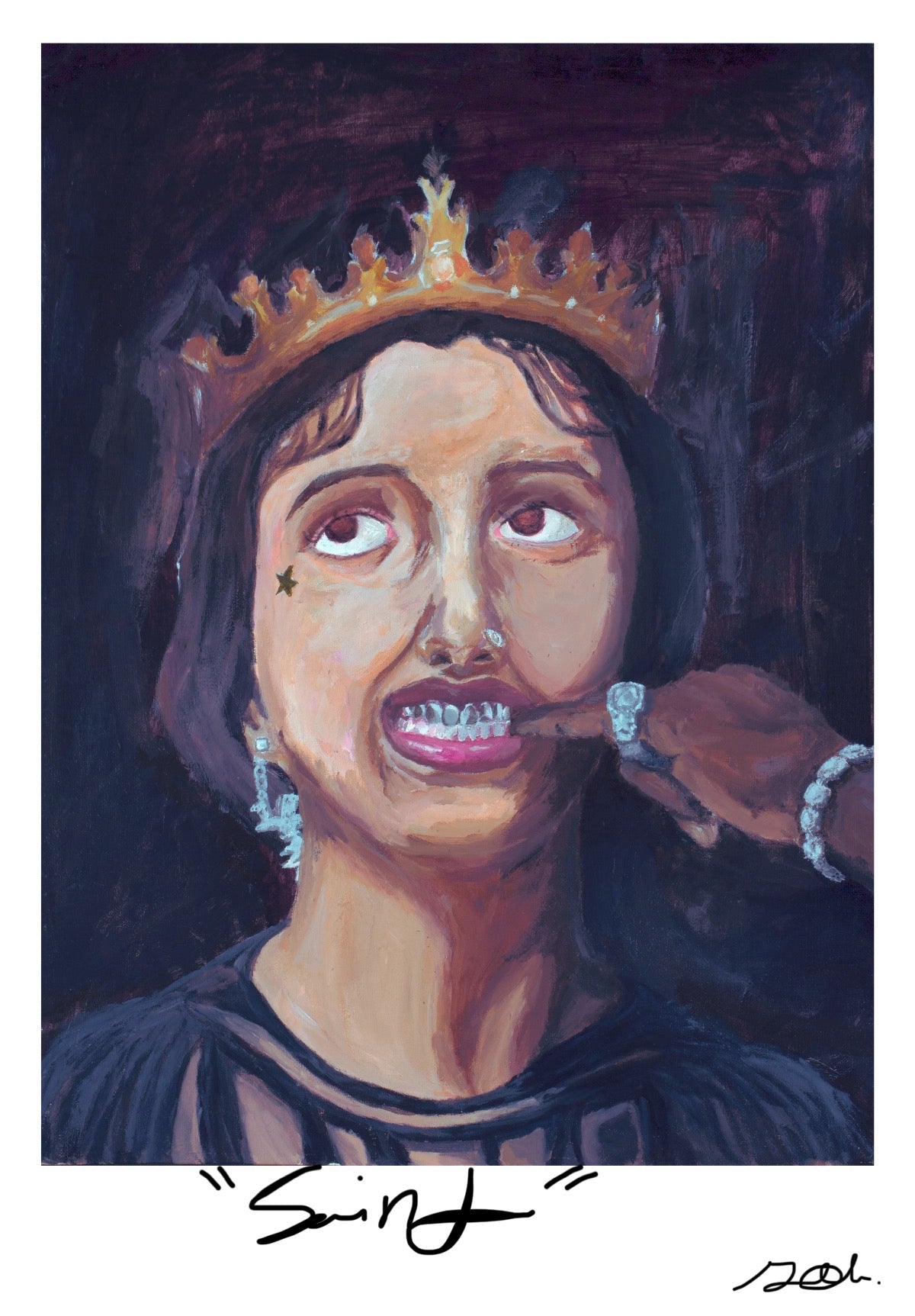 This postcard features a full-color print of “SAINT", with blank and labeled options